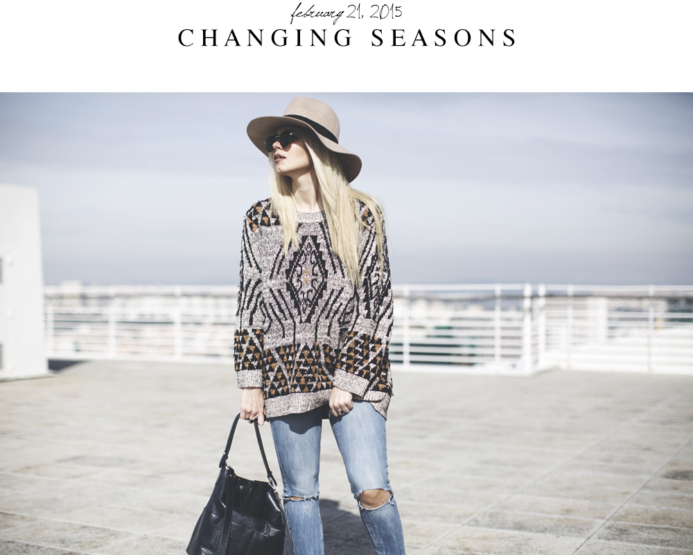 H&M sweater / Asos hat / Daniel Wellington watch / Mango jeans / Zara bag / Asos sunglasses / Zara boots